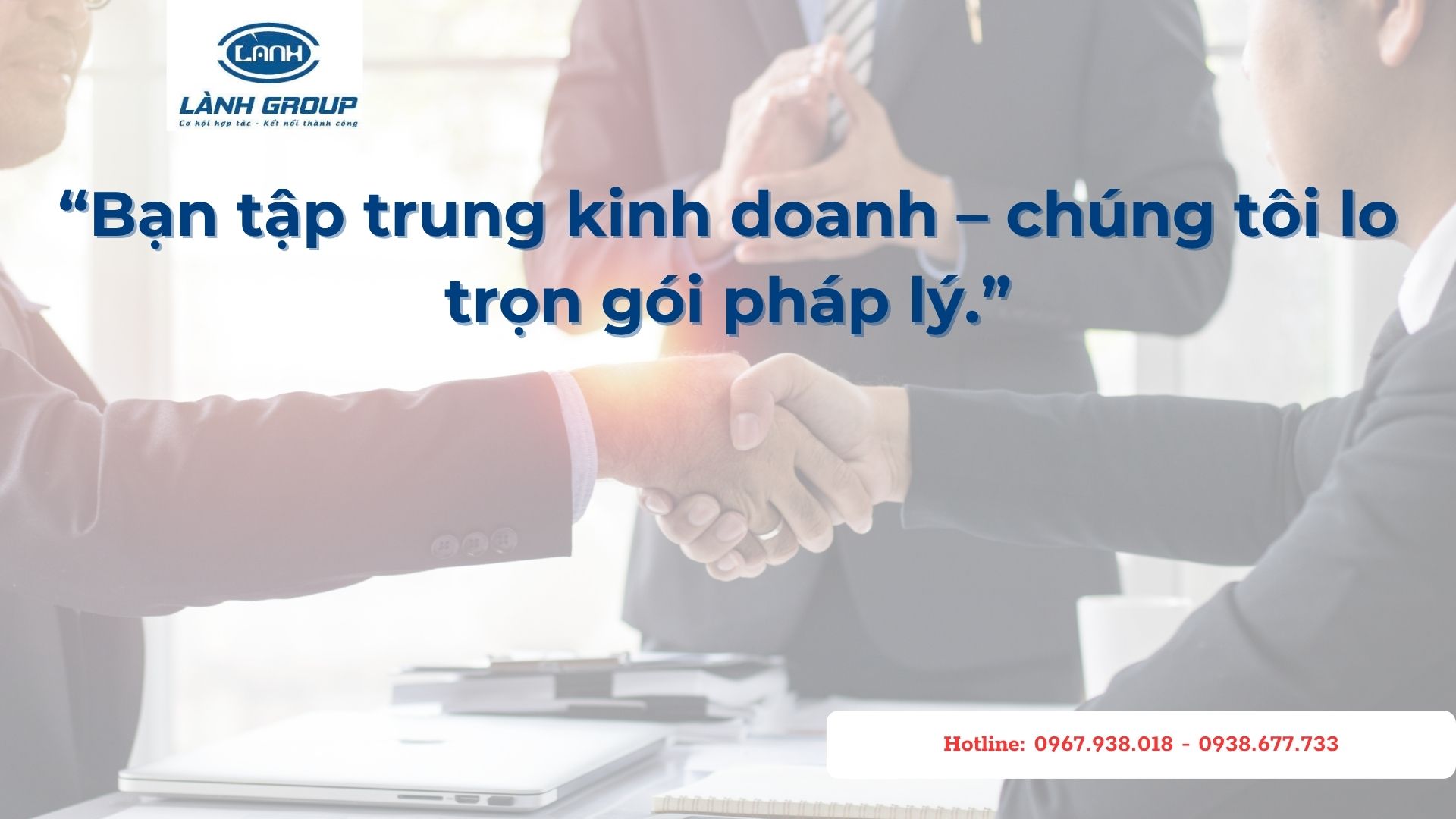 Lành Group là đơn vị chuyên cung cấp dịch vụ thành lập công ty, tư vấn pháp lý, đăng ký giấy phép con, kế toán thuế và hỗ trợ thủ tục doanh nghiệp. Chúng tôi đã hỗ trợ hơn 1.000+ khách hàng khởi nghiệp, doanh nghiệp SME, cá nhân kinh doanh tại Tây Ninh, TP.HCM, Bình Dương, Đồng Nai và các tỉnh miền Đông Nam Bộ.