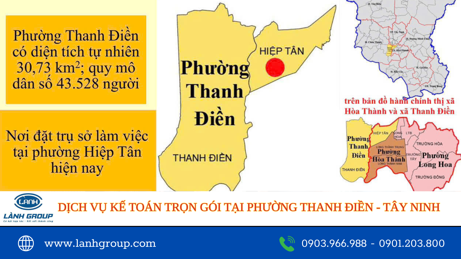 Lành Group Tây Ninh cung cấp dịch vụ kế toán trọn gói tại phường Thanh Điền – hỗ trợ kê khai thuế, lập báo cáo tài chính, quyết toán thuế và tư vấn thuế chuyên nghiệp, chính xác, bảo mật tuyệt đối.