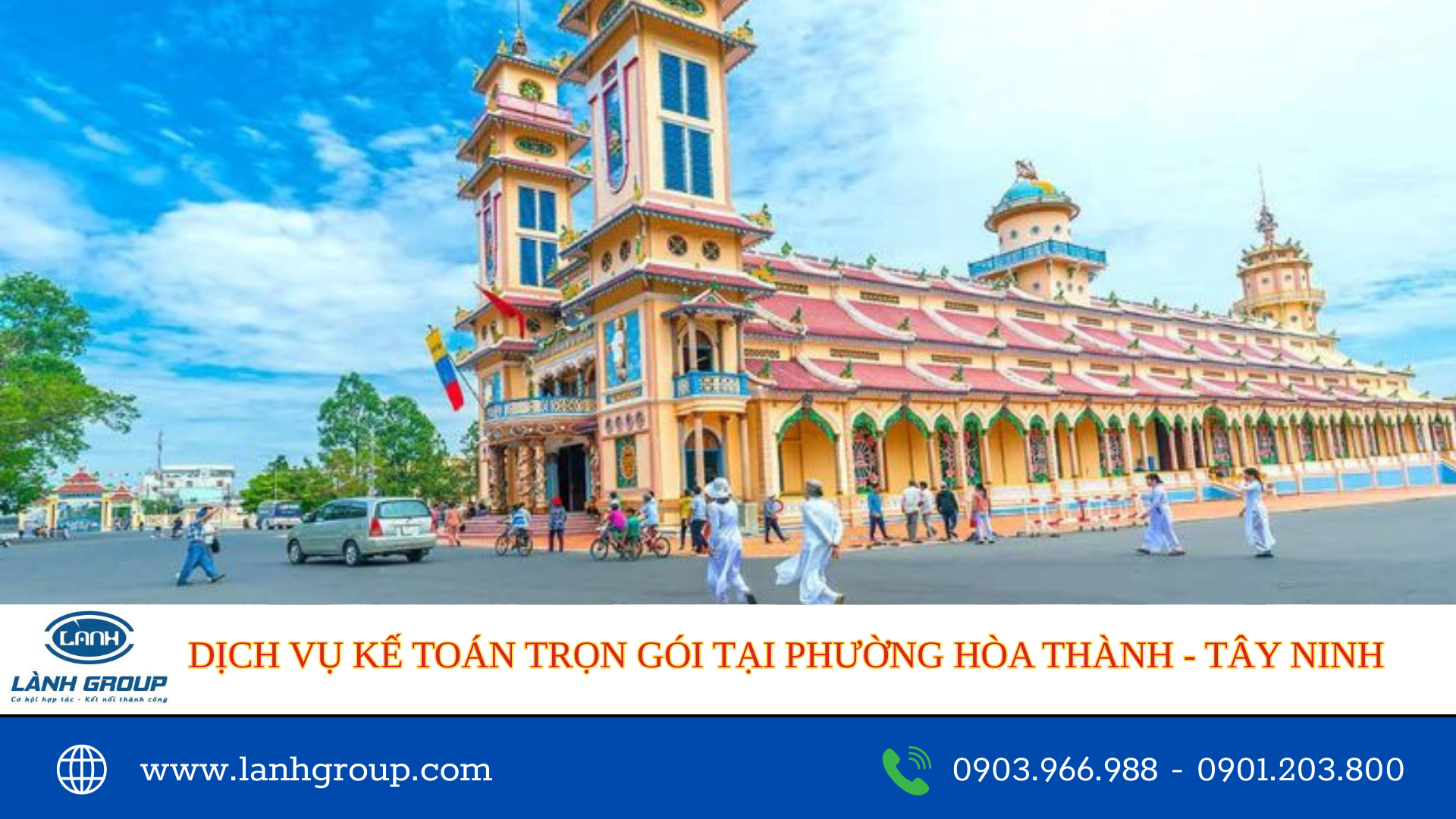 Lành Group Tây Ninh cung cấp dịch vụ kế toán trọn gói tại phường Hòa Thành – hỗ trợ kê khai thuế, lập báo cáo tài chính, quyết toán thuế và tư vấn thuế chuyên nghiệp, chính xác và bảo mật tuyệt đối.