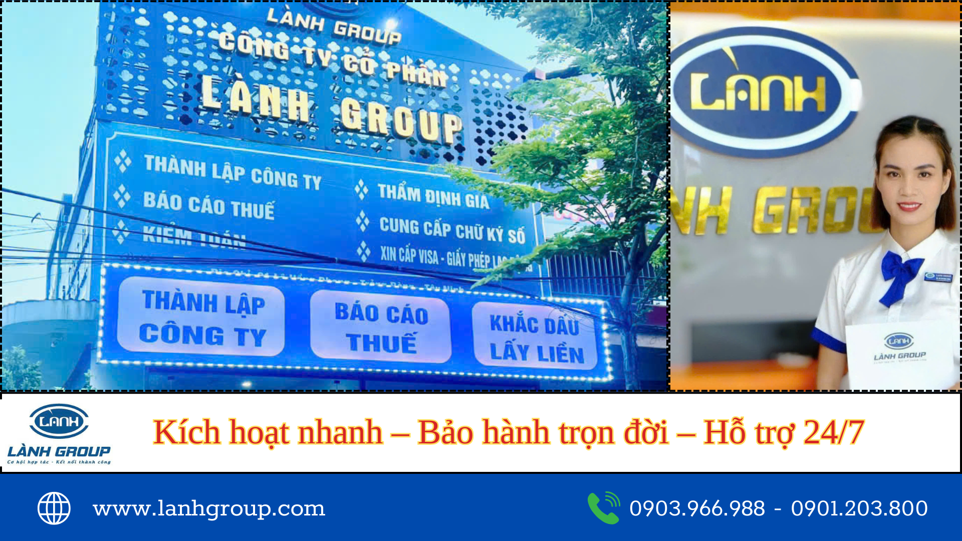 Lành Group cam kết mang lại dịch vụ chuyên nghiệp, hỗ trợ tận nơi cho cả cá nhân lẫn doanh nghiệp.
