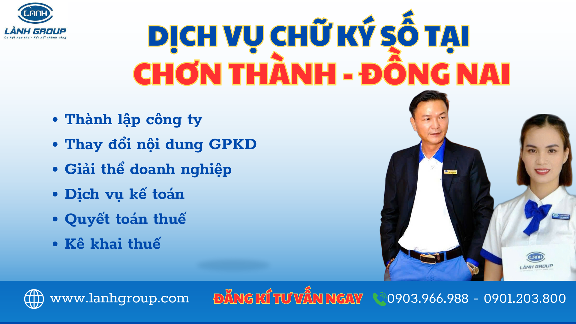 Nếu bạn đang tìm dịch vụ chữ ký số tại phường Chơn Thành, Đồng Nai uy tín, nhanh chóng, chất lượng vượt trội thì Lành Group Biên Hòa chính là lựa chọn hàng đầu. Với đội ngũ chuyên nghiệp, hỗ trợ tận nơi, kích hoạt nhanh và luôn đồng hành trong suốt quá trình sử dụng, chúng tôi cam kết mang lại trải nghiệm tốt nhất cho khách hàng.